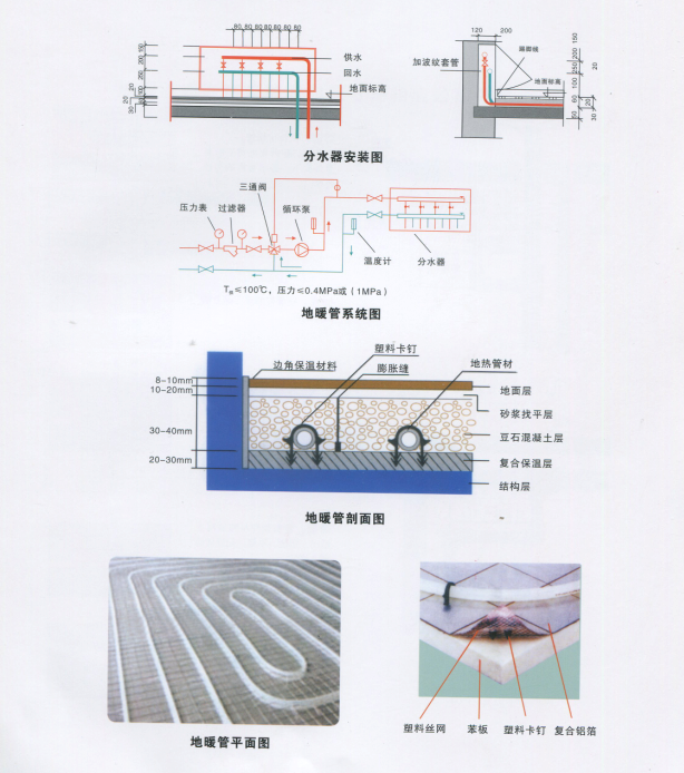 (1)按照設(shè)計(jì)圖紙的要求,進(jìn)行放線和配管,同一通路的加熱管應(yīng)保持水平;